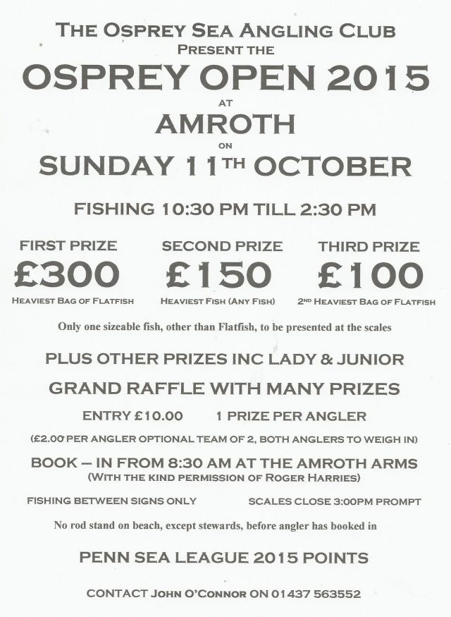 Payment by PayPal to huw@pembrokeshirecoarsefishing.co.uk as the email address to send money to.