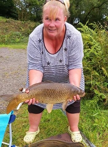 Liz who visits with her caravan took her largest fish to datelst weekend a 10.4 lb common carp, she puts it down to her new pink rod!